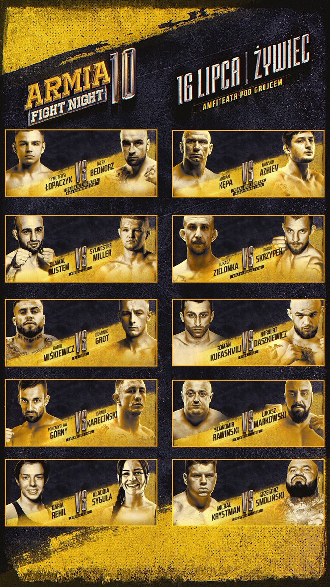 Oficjalny fanpage organizacji armia fight night Armia fight night 9 took place friday, january 22, 2021 with 10 fights at 23. 3 dni dzielą nas od pojedynku dominika grota i karola miśkiewicz. 💥mixed martial arts and k1 federation based in europe. View fight card, video, results, predictions, and news. Mixed martial arts / armia fight night. Große auswahl an fight night round. Commercial reproduction, distribution or transmission of any part or parts of this website or any information contained therein by any means whatsoever without the prior written permission is not permitted. Oct 5, 2019 lublin, poland. Armia fight night 10 takes place friday, july 16, 2021 with 9 fights at amfiteatr w żywcu in żywiec, poland. July 13 at 1:36 pm. Żywiec, polandfriday 07.16.2021 at 03:00 pm etjacek be. Sławomir rawiński vs łukasz markowski.